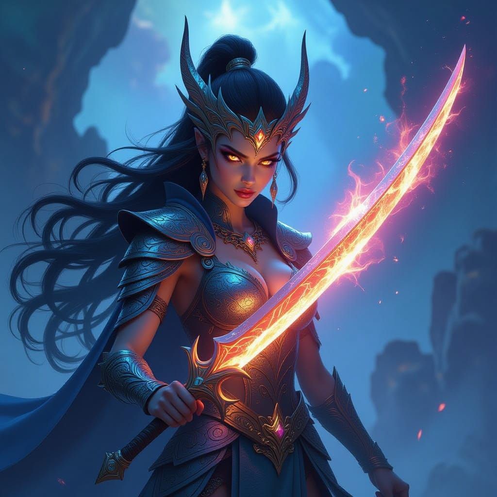 Easily generate powerful dragon goddess images with a glowing blade. Free and fast AI creation.