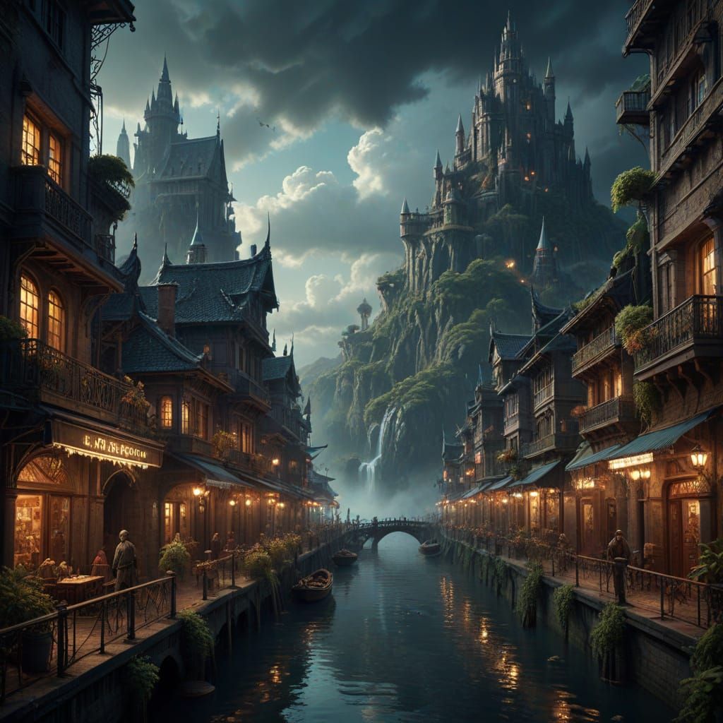 This image depicts a detailed digital matte painting with dramatic atmosphere. The artwork showcases a cinematic and maximalist aesthetic.