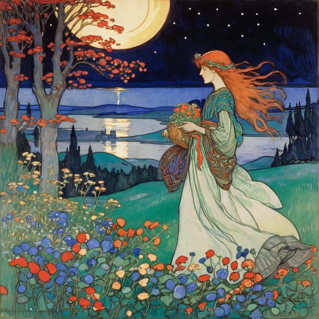 Generate your own unique art pieces inspired by the style of Florence Harrison, easily and for free.