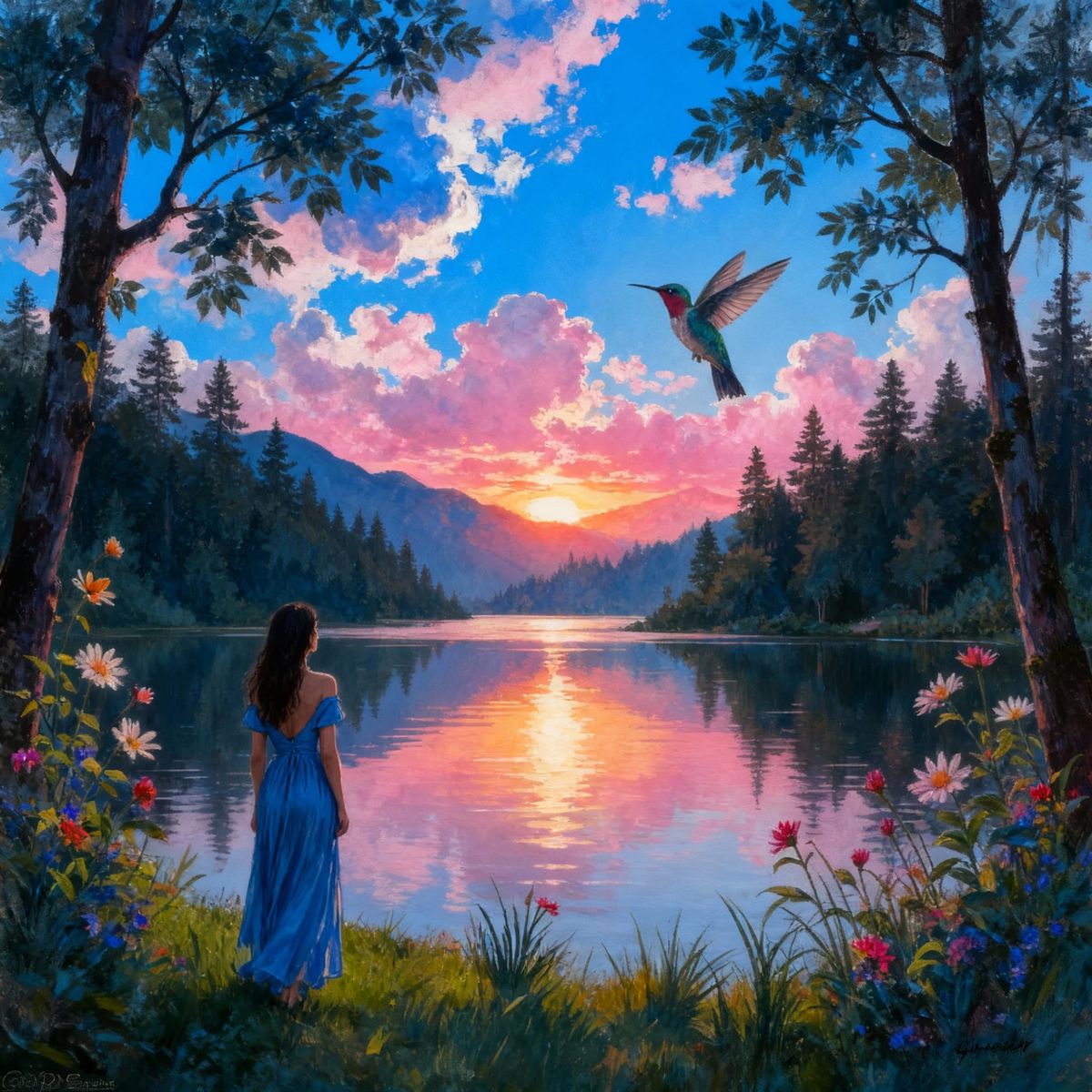 Generate your own vibrant sunset lake pictures with our free and easy AI image generator.