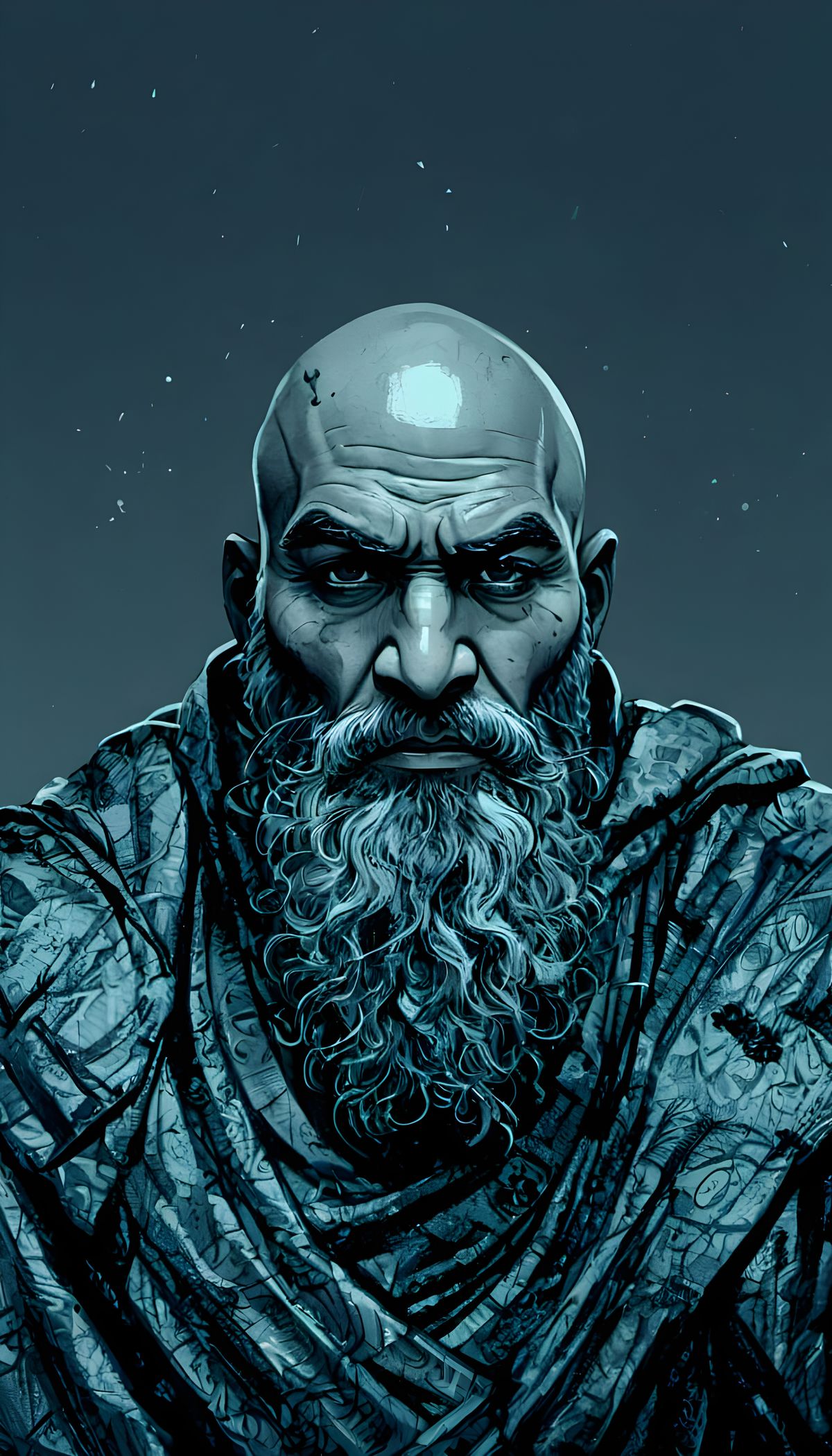 This classic black and white cartoon style image showcases a powerful and resilient character with intricate textures and emotional depth. A subtle gradient of gray tones and nuanced shading bring out the determined facial expression, while a soft, diffused background adds a timeless and classic aestheti...