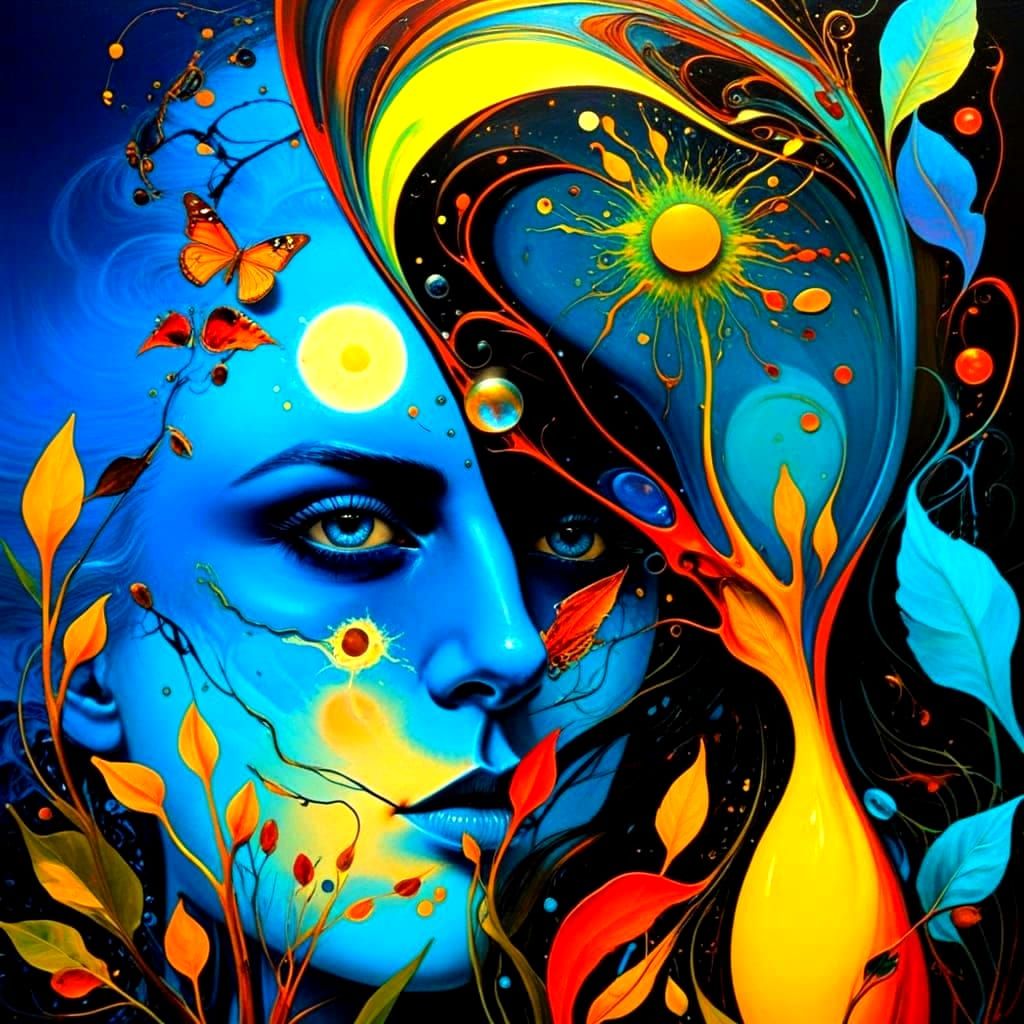 stunning fantastic surrealistic painting by Salvador Dali, fantasy, surrealism, high contrast, rich colors, vivid colors, vibrant colors, luminous colors, intense colors, saturated colors, bright bold colors, triadic colors, HDR, color depth, fantasy, eldritch, surrealism, hyperrealism, minimalism