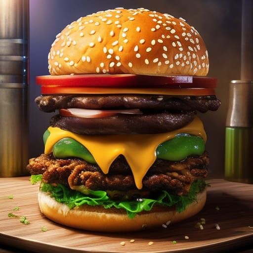 Craving your own mouth-watering burger creation? Design your perfect greasy burger with our free AI image generator!