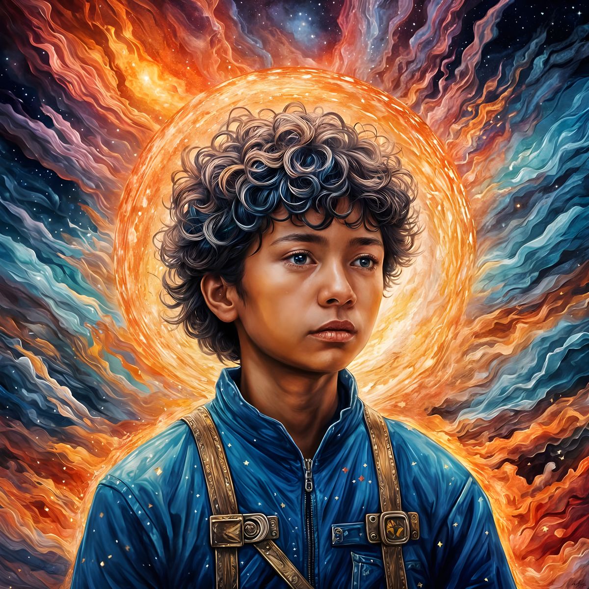 This image is a stunning, high-resolution holographic illustration of a cosmic journey to the center of the Earth, blending astral and mixed media elements to create a vibrant, otherworldly effect.