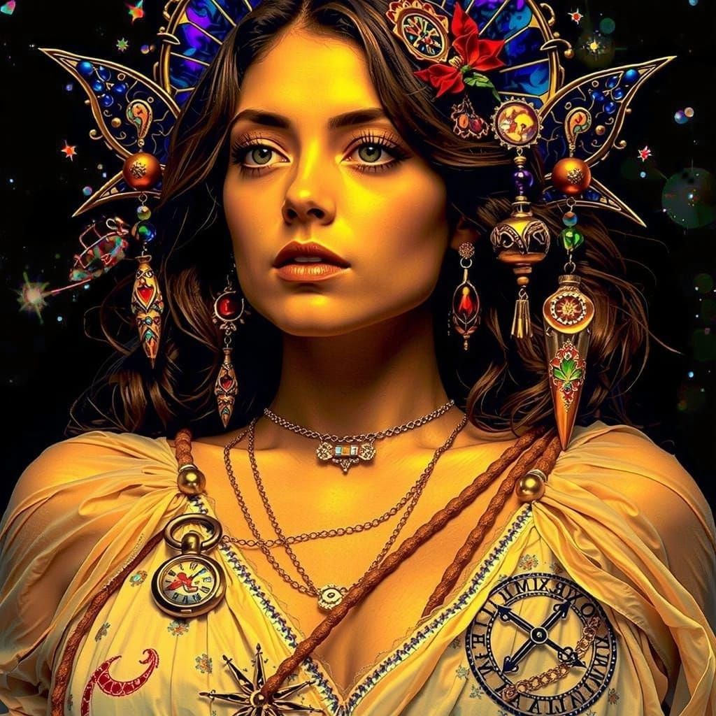This image is a kaleidoscope of colors and textures, reminiscent of intricate stained-glass art, with swirling patterns and magical themes that evoke a sense of wonder and enchantment.