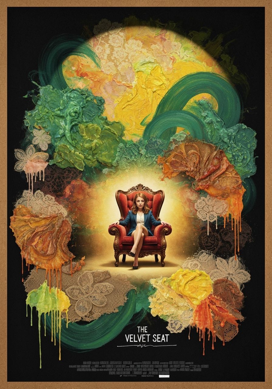 This image shows a movie poster for a 2020s psychological thriller. The mixed media collage features Anna Kendrick in a spotlight on a velvet chair. Abstract expressionism and emotive intensity define the artwork.