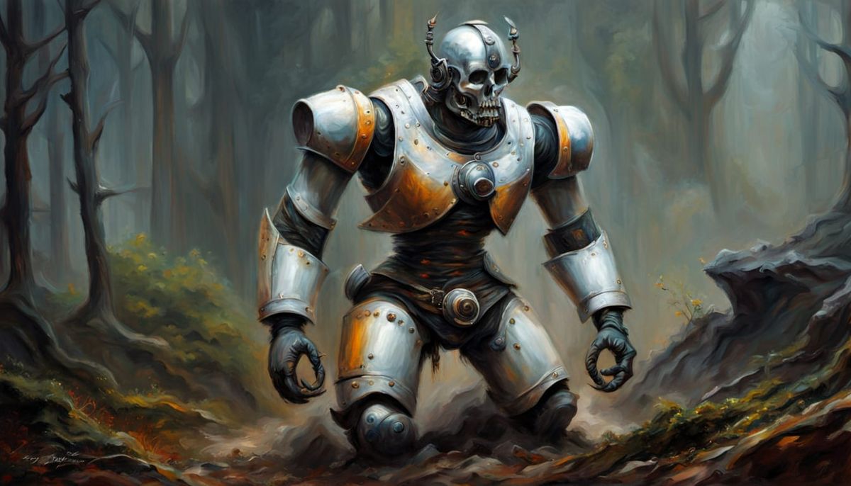 A striking picture of a canvas painting with vivid colors. The oil painting features whimsical brush strokes and deep contrast in a style reminiscent of Rembrandt.