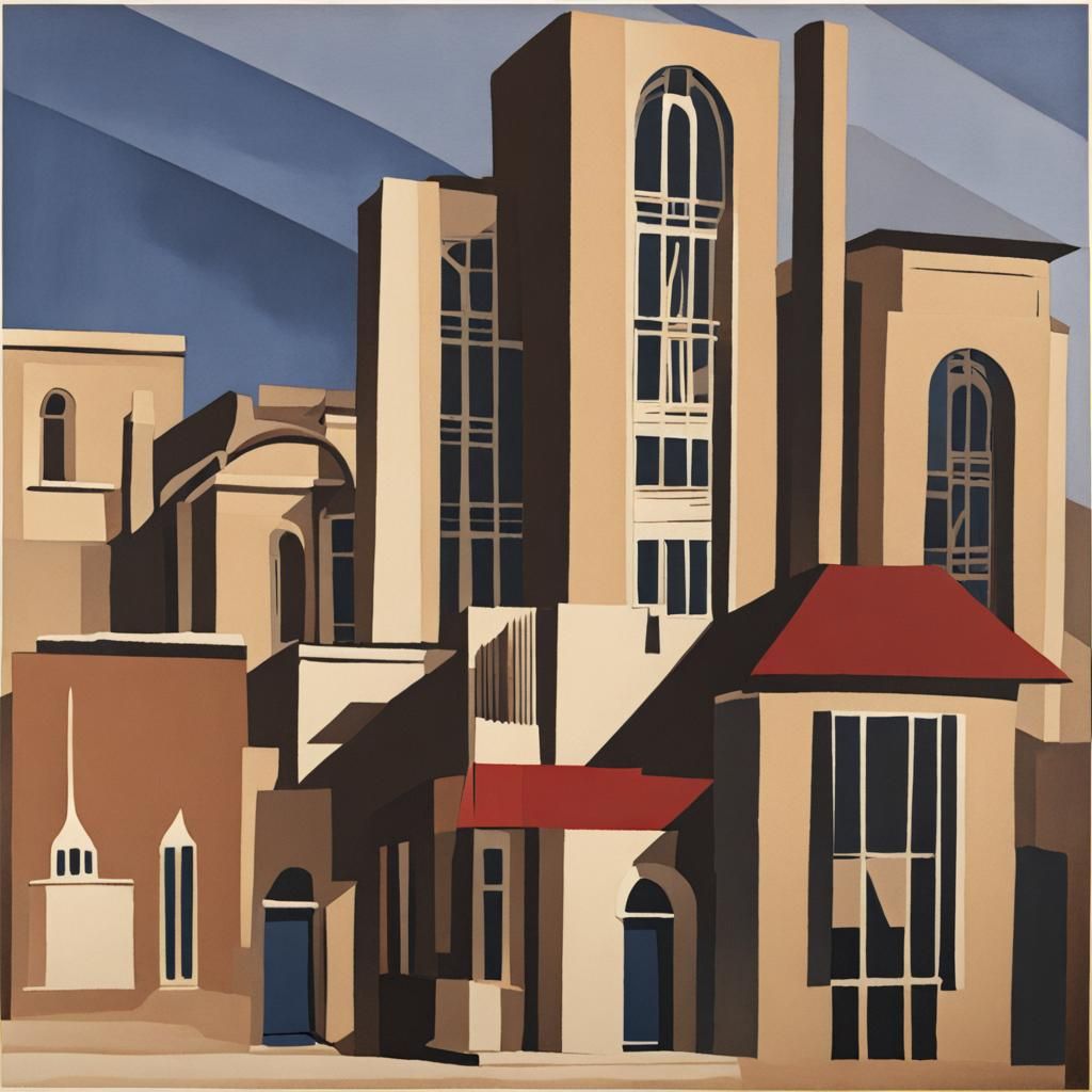 A striking picture of Lebanon in an industrial style with strong red accents. The aesthetic is reminiscent of precisionist art, focusing on geometric forms.