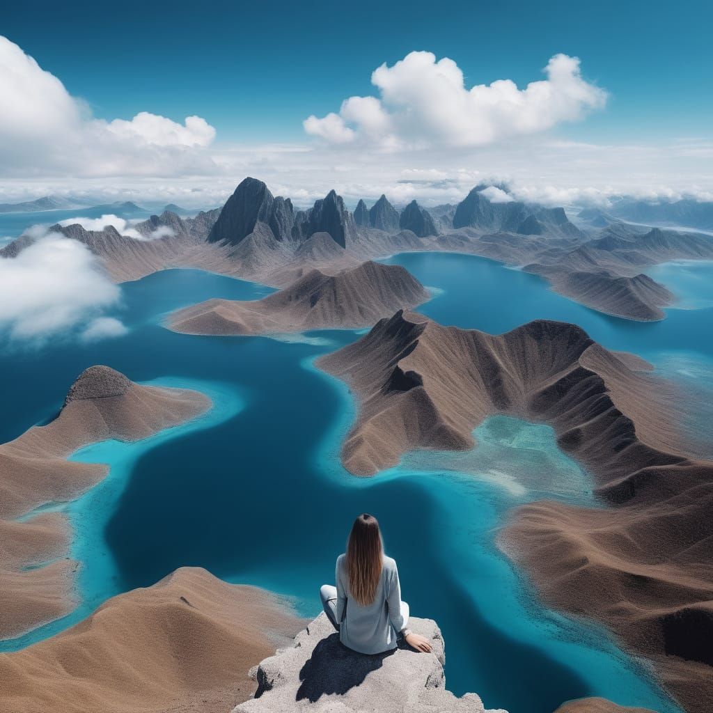A surreal image of a beautiful young woman in an unusual world. Ultra-detailed and captivating, the picture showcases the beauty of the unreal.
