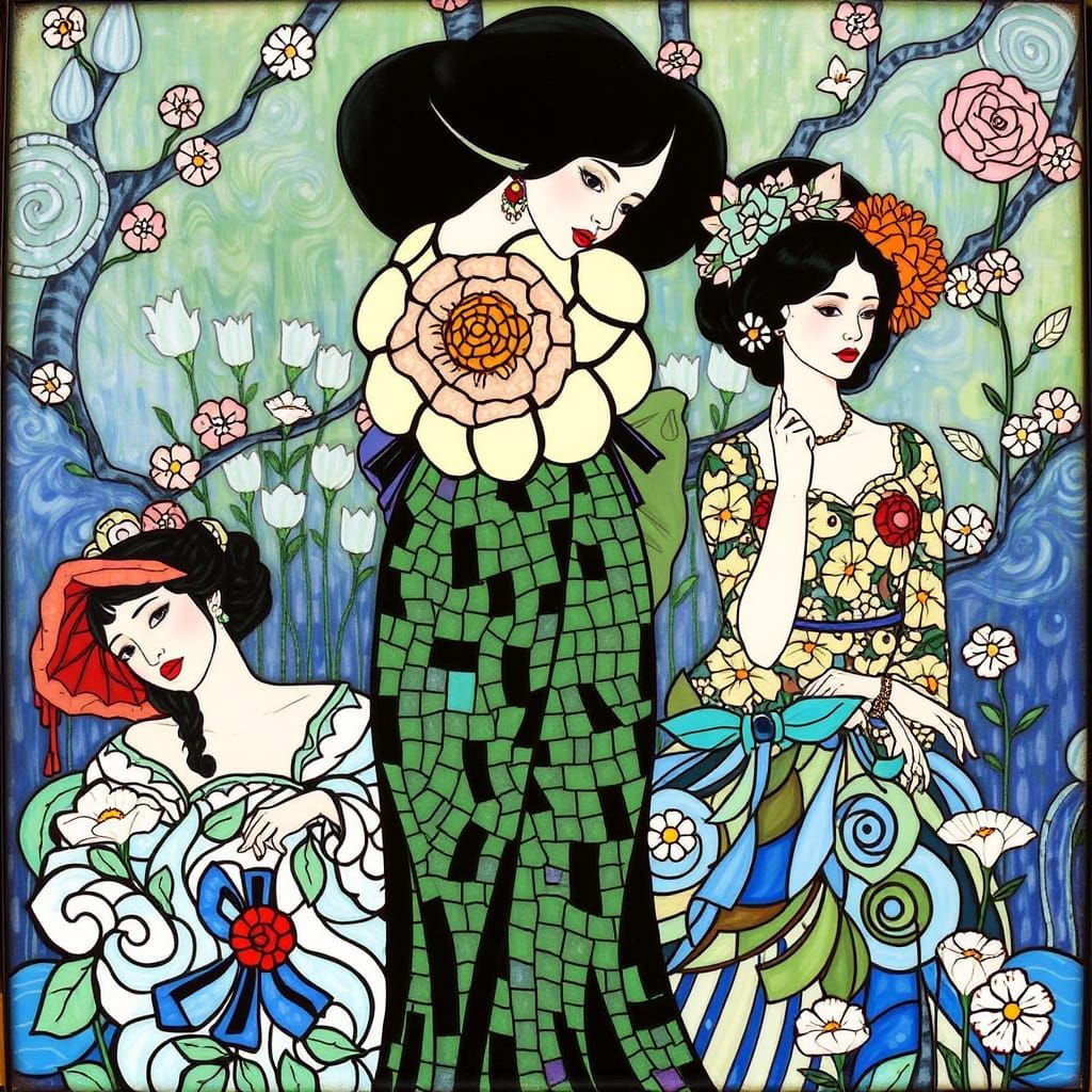 This image is a vibrant fusion of styles, blending Impressionist brushstrokes with whimsical touches and a dash of Art Nouveau elegance, creating a captivating urban scene.