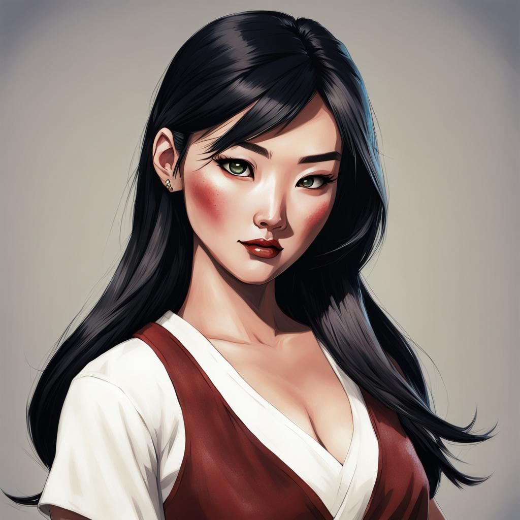 This picture features a modern interpretation of Ty Lee. It showcases a contemporary take on the character, blending her essence with modern fashion and style.