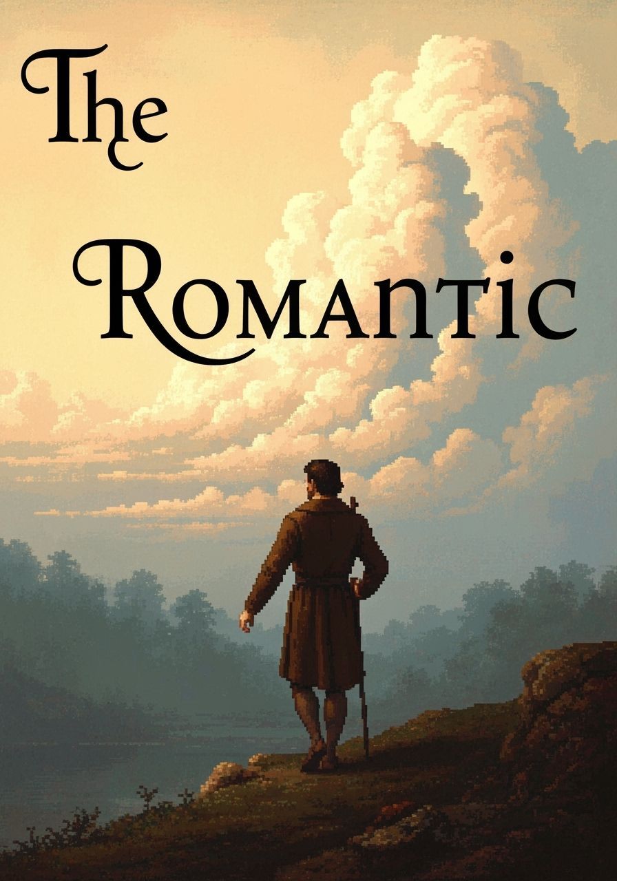 This image shows a pixel art interpretation of a famous Romantic painting. The artwork is reminiscent of 16-bit video games, with a dreamy, nostalgic, and atmospheric aesthetic.