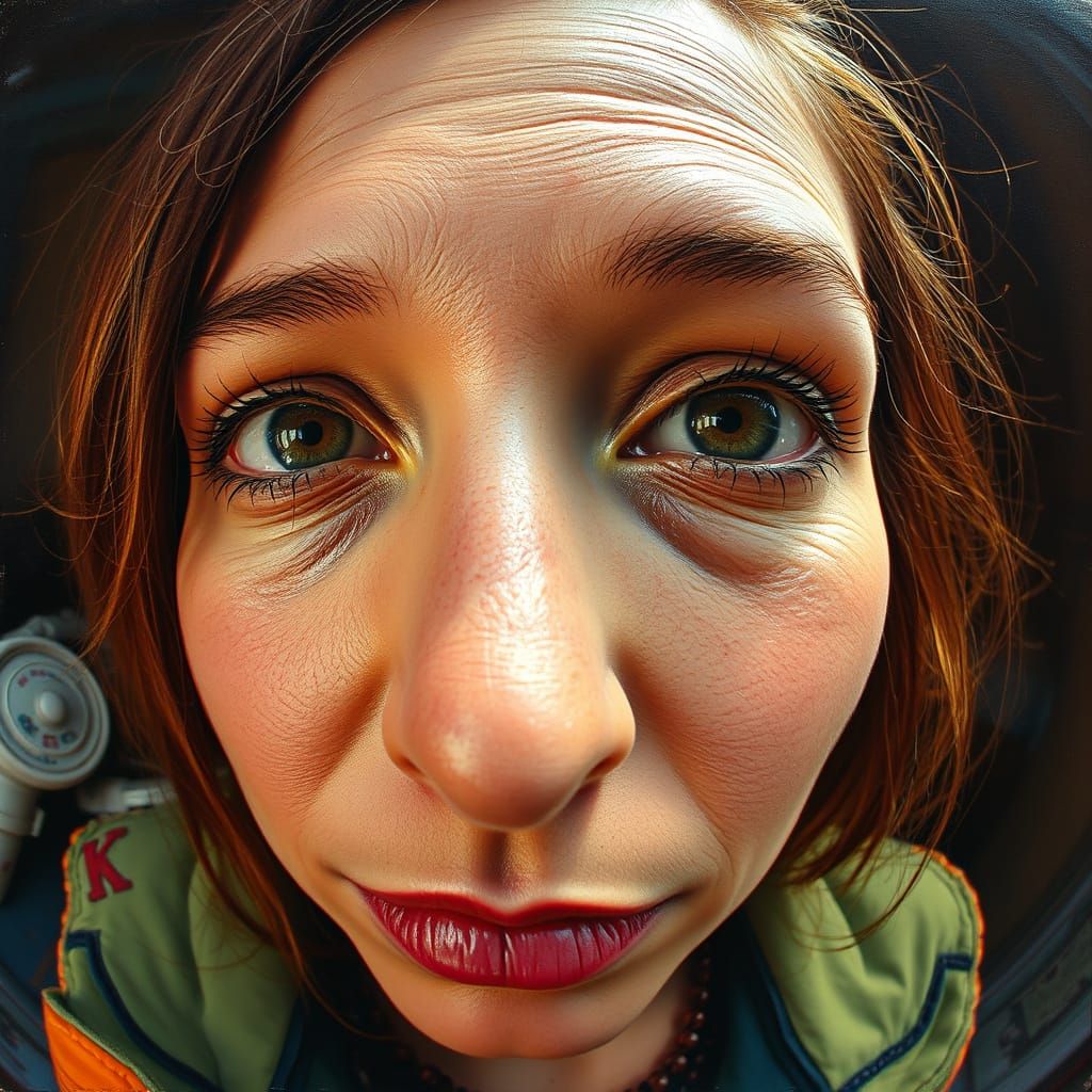 This image showcases a woman's portrait as a vibrant, textured oil painting. It features thick impasto brushstrokes, rich earthy colors, and warm golden light, capturing a detailed, imaginative aesthetic.