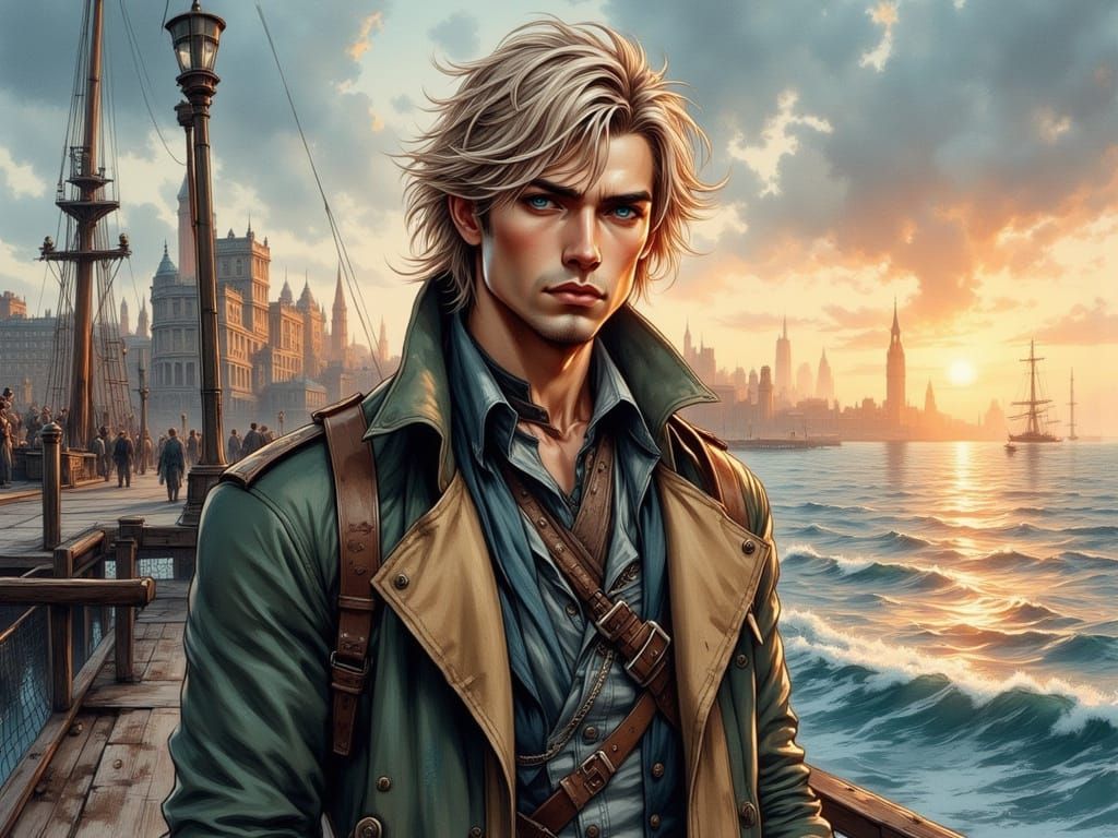 <lora:XenoPin 2p0:1.0> <lora:AyamifyThemAll:1.0> <lora:Genshin Ultra:1.0> <lora:Athletic Men:1.0> A limited palette John Blanche style water-colour (Tetsuya Nomura influences) portrait of a man (rugged features; ash-blonde hair; dark tanned complexion; light blue-green eyes; medium build; dark-ochre ...