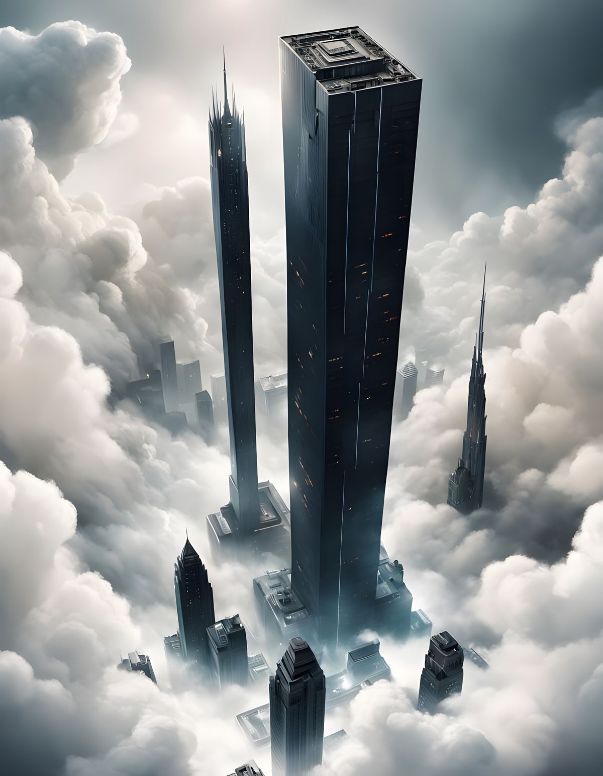 A dramatic digital painting of a futuristic cityscape, captured in the style of a cinematic film still, with a focus on atmospheric lighting and detailed textures.