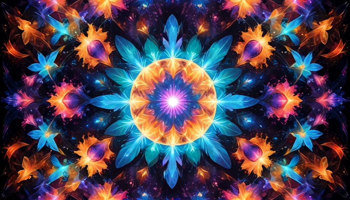 Spectralized Surreal Sensory dreaming holographic colored Kaleidoscopic Luminous Opalescent angelic