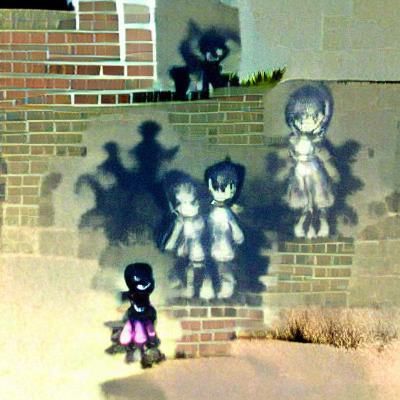 This image shows silhouetted figures of children cast as eerie shadows. The minimalist composition evokes a sense of unease and mystery.