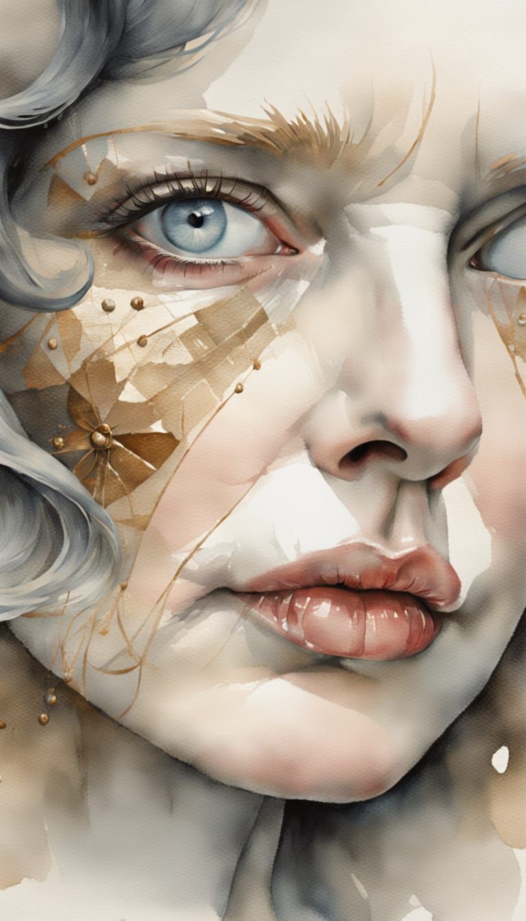 A delicate watercolor portrait of an elderly woman, showcasing her expressive features and the gentle nuances of a mixed media art piece.