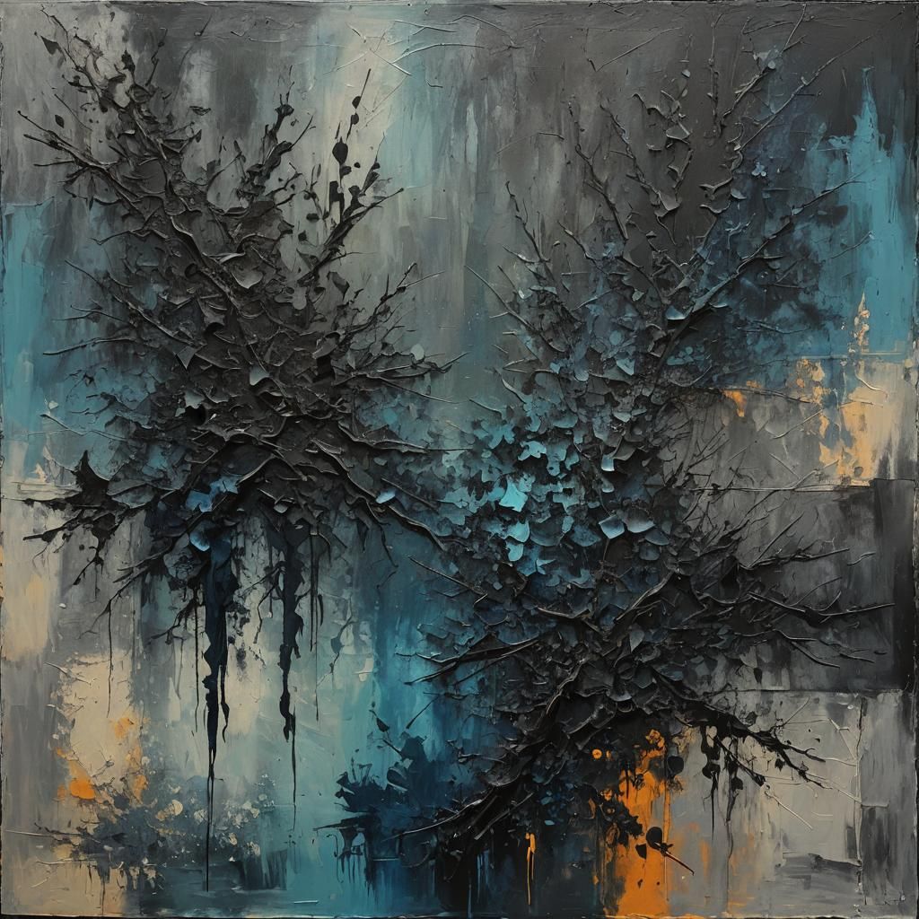 This image shows an abstract rendering of a shadow figure in a cold, gloomy room. The artwork uses complementary colors and fine details to create a chilling atmosphere.