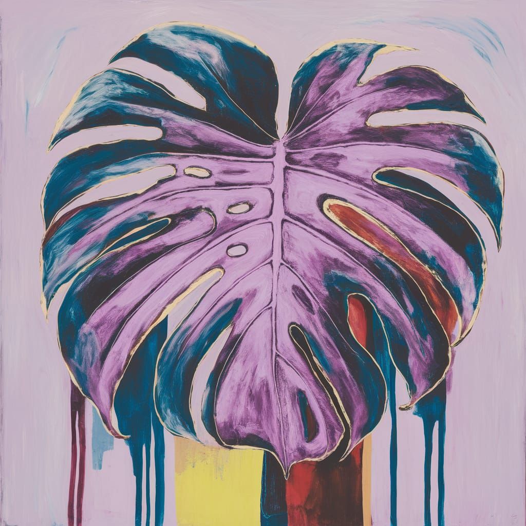 This abstract artwork features a futuristic monster amidst a swirling mix of ultramarine, spring, and umber hues, creating a dynamic and high-tech visual experience.