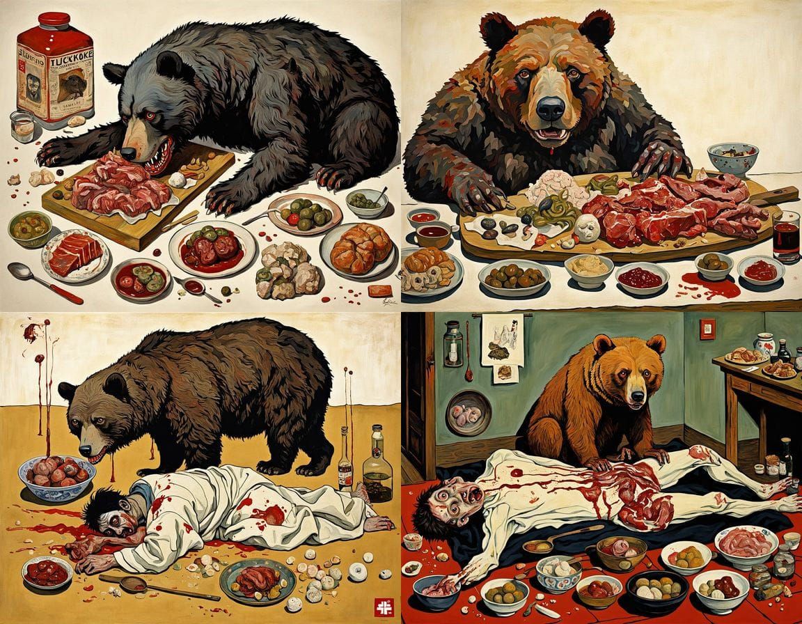 This image depicts a grotesque, surreal creature, blending elements of various mythologies, in a disturbing oil painting style reminiscent of Egon Schiele's dark and emotional works