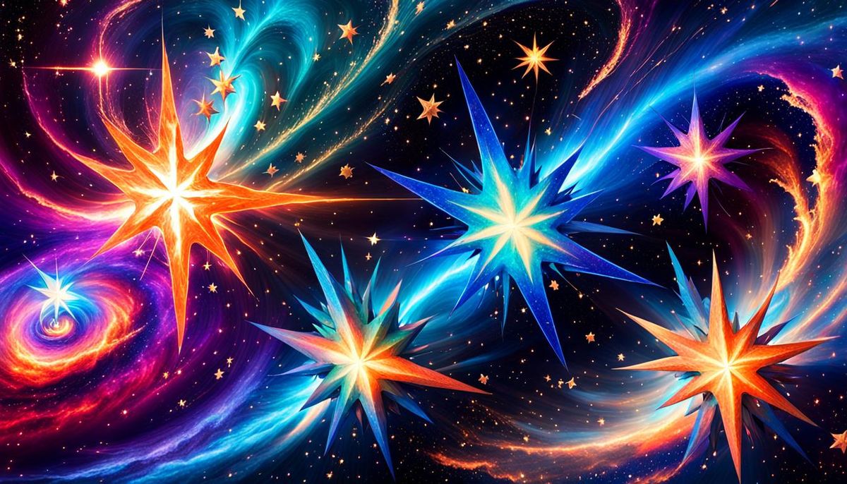 This image shows a vivid cluster of stars amidst a cosmic plasma storm. The starfield aesthetic captures the energetic realm of an astrospheric astrowave.