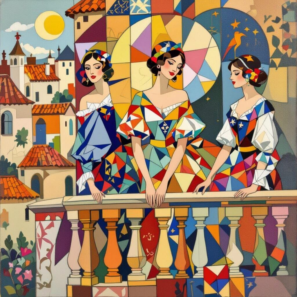 A gothic portrait of a beautiful princess standing on a balcony in the moonlight. The image evokes classic portraiture with a modern, painterly style.