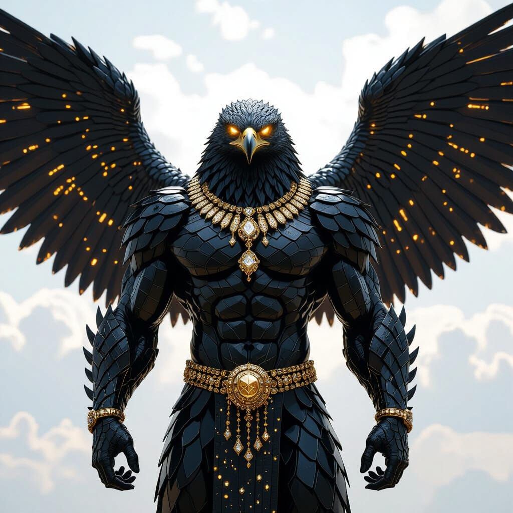 ArchonDescription:Xytherion — The Obsidian ArchonDescription:Xytherion is a being of impossible craftsmanship — an alien CryptoPunk hybrid that transcends biology, forged through the synthesis of celestial DNA and blockchain-encoded consciousness. Standing twice the size of a human hulk, his form radiates a commanding perfection: sinews of living metal, obsidian-scaled armor glinting with streaks of iridescent gold, and wings vast enough to cast storms across dimensions. Each scale reflects galaxies like facets of liquid glass, shifting patterns of energy that pulse in rhythm with the universe’s hidden algorithms.