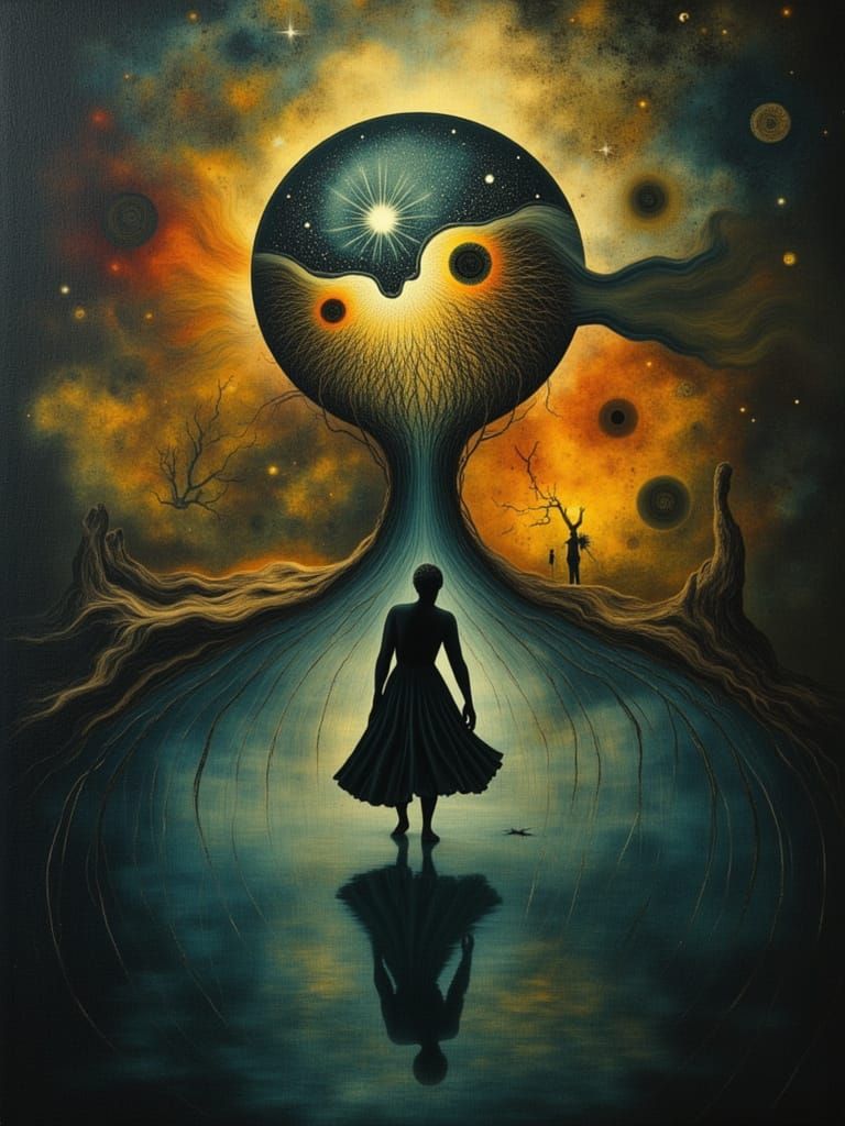 The application of theoretical techniques for minimizing scarring in the healing process of self-inflicted psychological wounds. Intensely surreal imagery and atmosphere, hypnagogia, existential, liminal, clinical depression, psychosis, dissociation, a mixture of 20th century Surrealist influences, Rembrandt ...