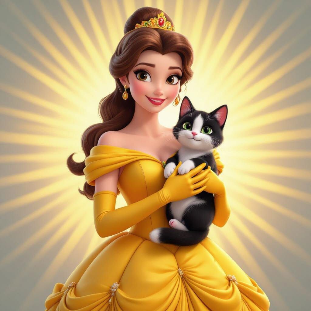 Easily generate your own Princess Belle, yellow dress, or cat images for free with our AI.