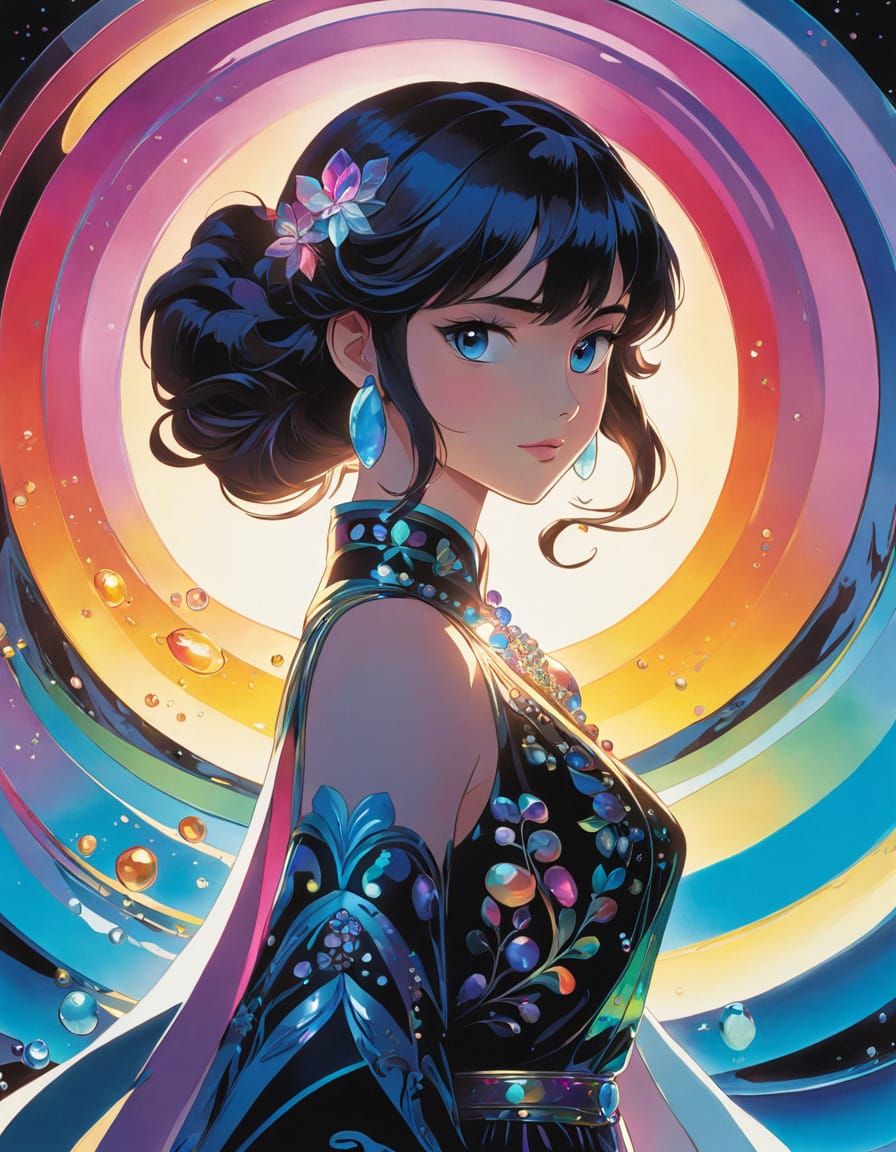 heatwave, wet-on-wet, glasswork, sweet, low contrast, hard shadows, norwegian folk art, waifu, cartoon network, rainbow gradient, epic showdown, jewel-tone, showa period