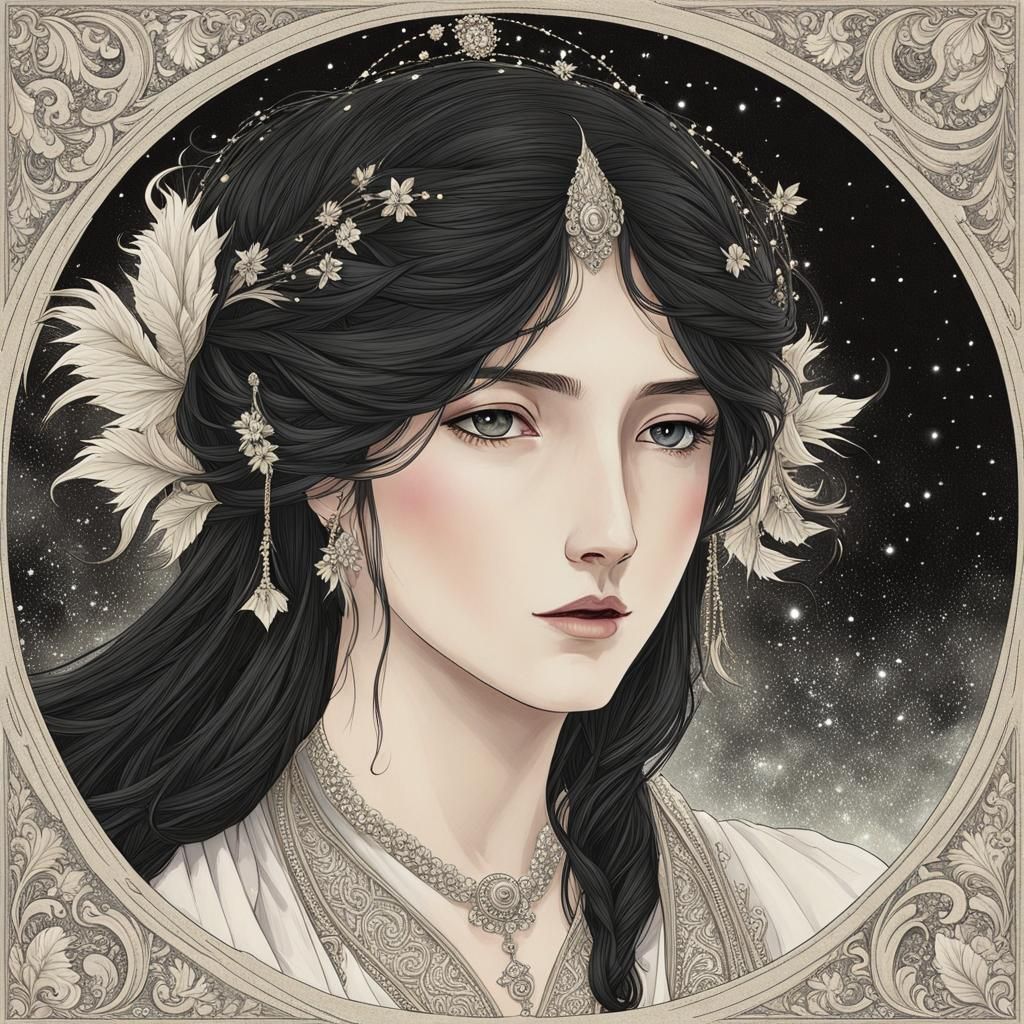This image shows a strikingly handsome man with dark eyes and a long black beard. He possesses a majestic presence, commanding attention and respect with his beauty and grace.