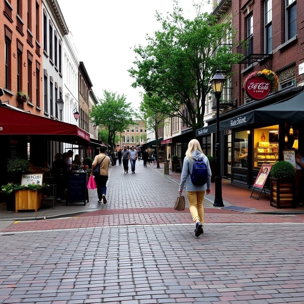 A vibrant depiction of a person walking through a bustling town. The image captures the energy of urban life and the feeling of being immersed in the city.