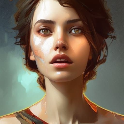 This image shows a hyperdetailed head and shoulders portrait of a coffee. The concept art features dynamic lighting, intricate detail, and triadic colors.