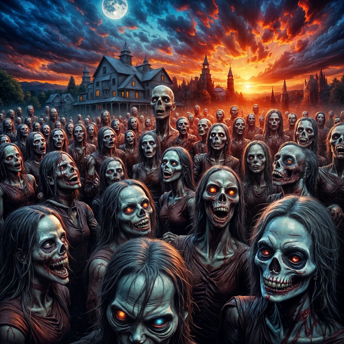 This image shows a horde of rotten, undead creeper zombies. The scene evokes a dark fantasy style with expressive brushstrokes, vivid colors, and atmospheric lighting reminiscent of oil paintings.