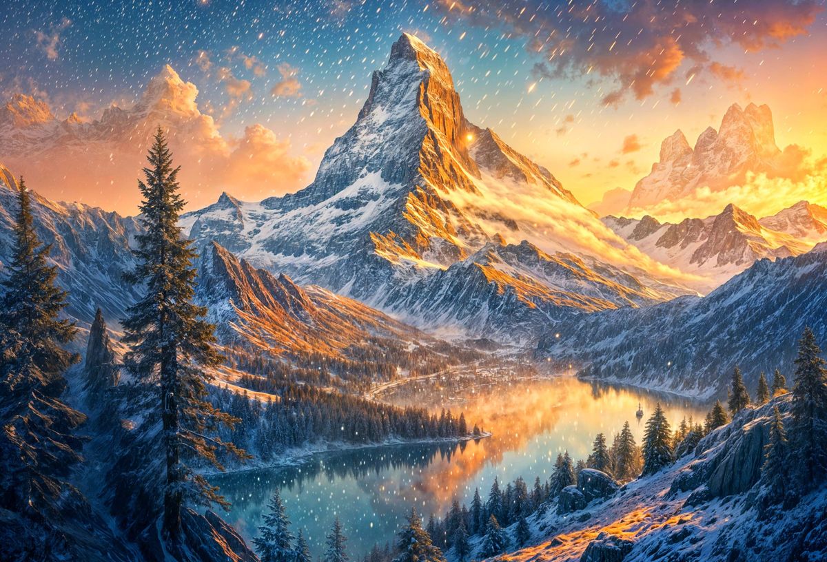 Generate stunning Matterhorn sunset pictures for free with our easy-to-use AI image creator. Start now!