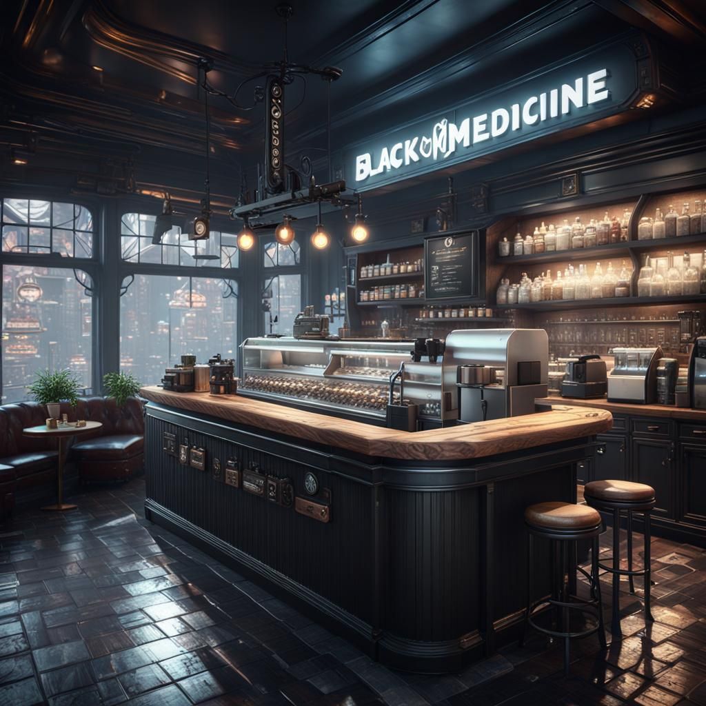 Inspired by the coffee shop Black Medicine in Edinburgh, Scotland