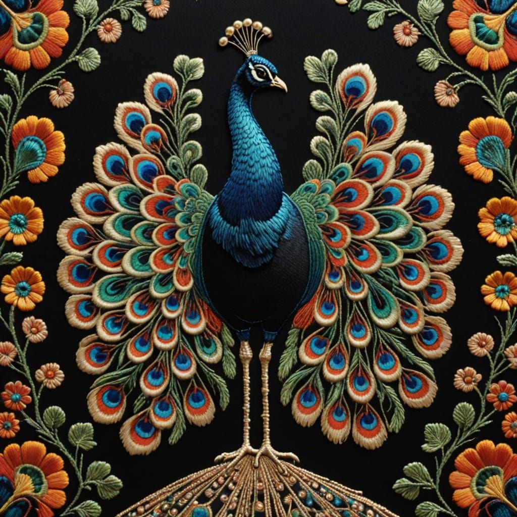 Create your own Seventies-inspired, highly-detailed, embroidered animals on toadstools with our free AI image generator.