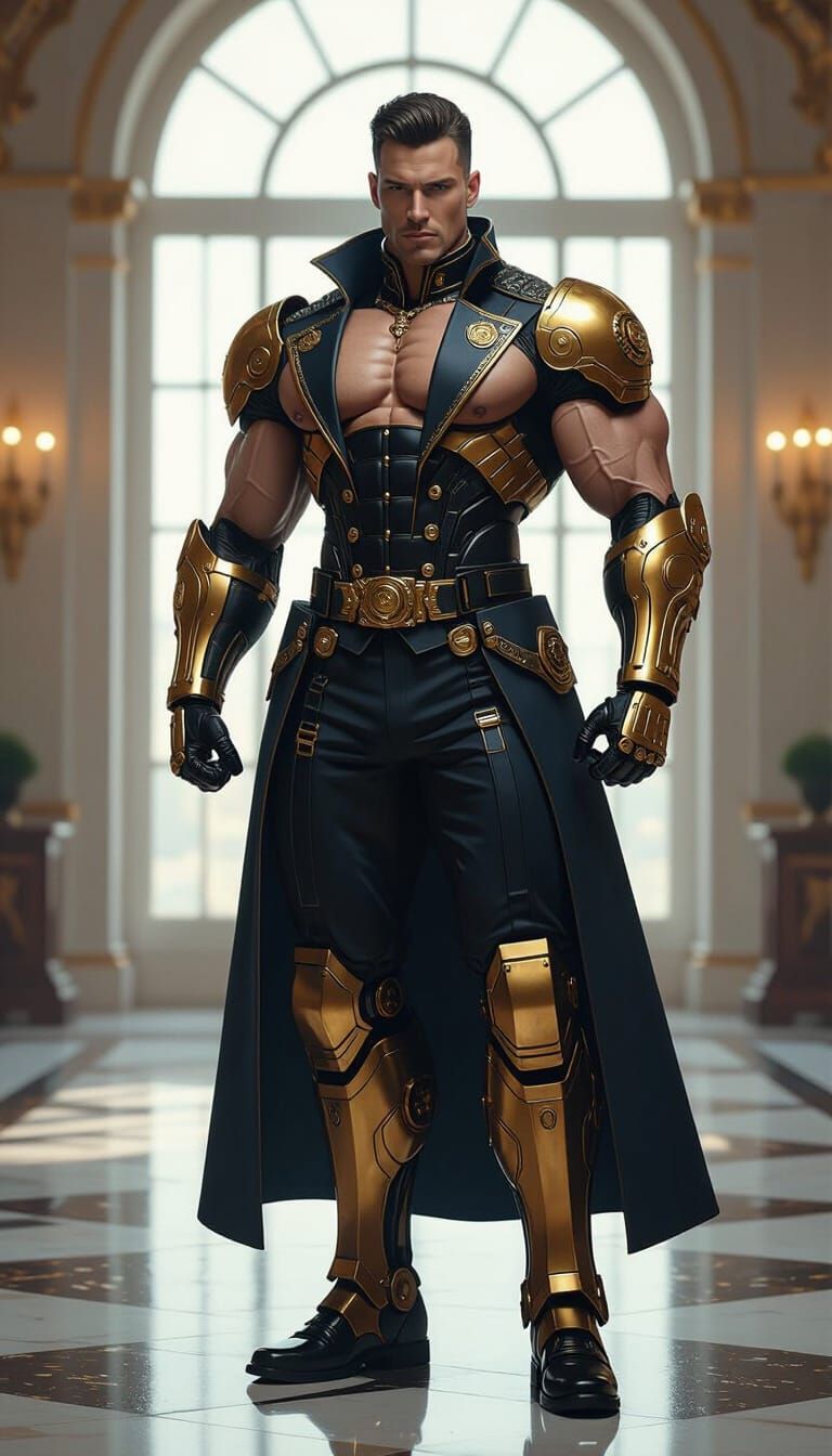 Easily generate unique images of muscular cyborg butler soldiers in detailed tactical gear. Free and simple to use!