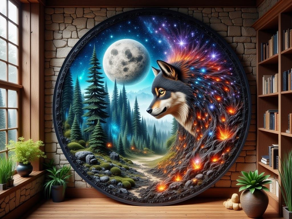 Generate breathtaking nature images like this spectral wolf scene for free, easily, and with endless possibilities