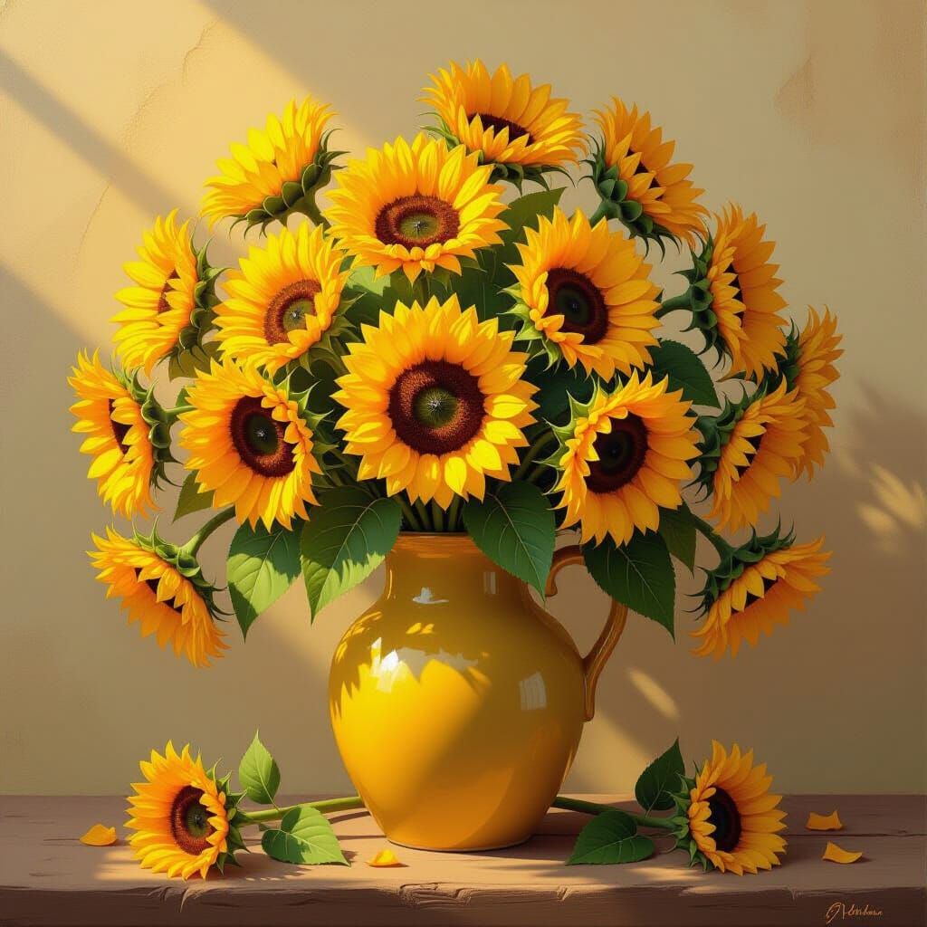 Generate your own stunning oil paintings of sunflowers with our free AI image generator. Easy and fun!