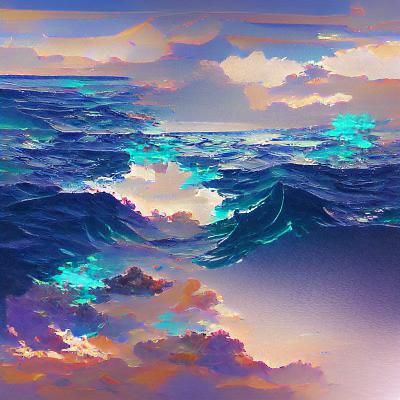 This image shows what an AI image generator created when given a very simple prompt about the ocean. The artwork captures the vastness and mystery of the sea.