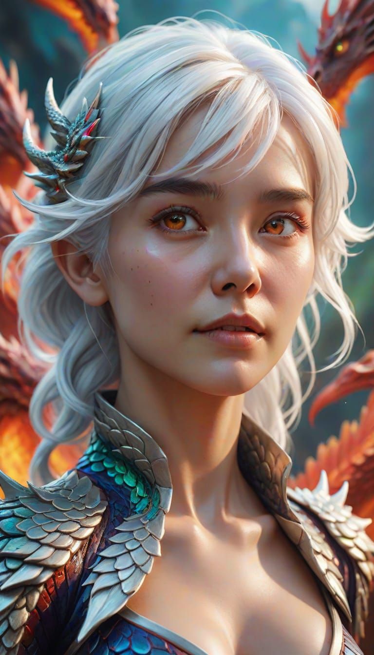 Design a unique portrait with silver hair shaped into dragons. It's free and easy with our AI image generator!
