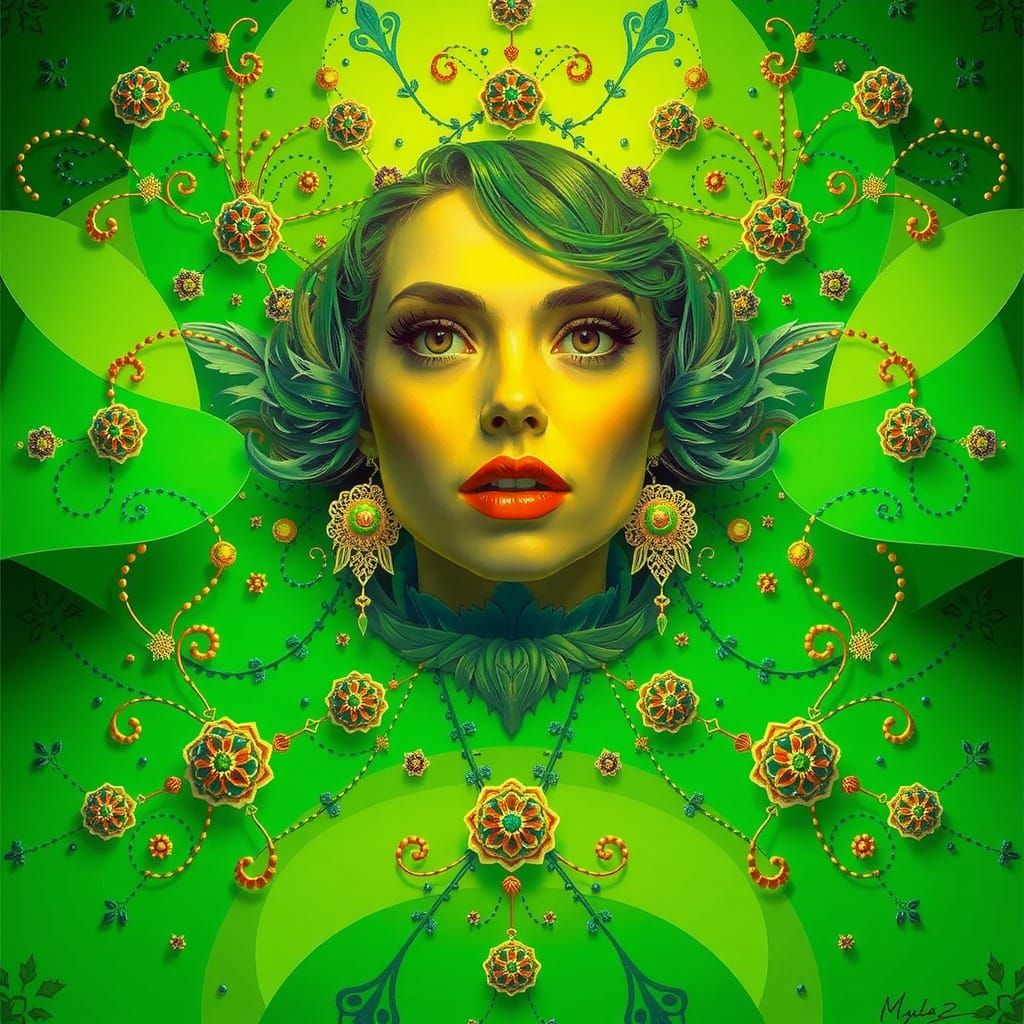 This image is a breathtaking, meticulously detailed creation that showcases a mesmerizing blend of triadic colors. The artwork exudes a sense of drama and atmosphere, inviting the viewer to step into its whimsical world.