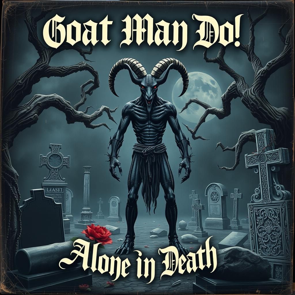 An vinyl record album cover from a fictional death metal band Goat Man Do