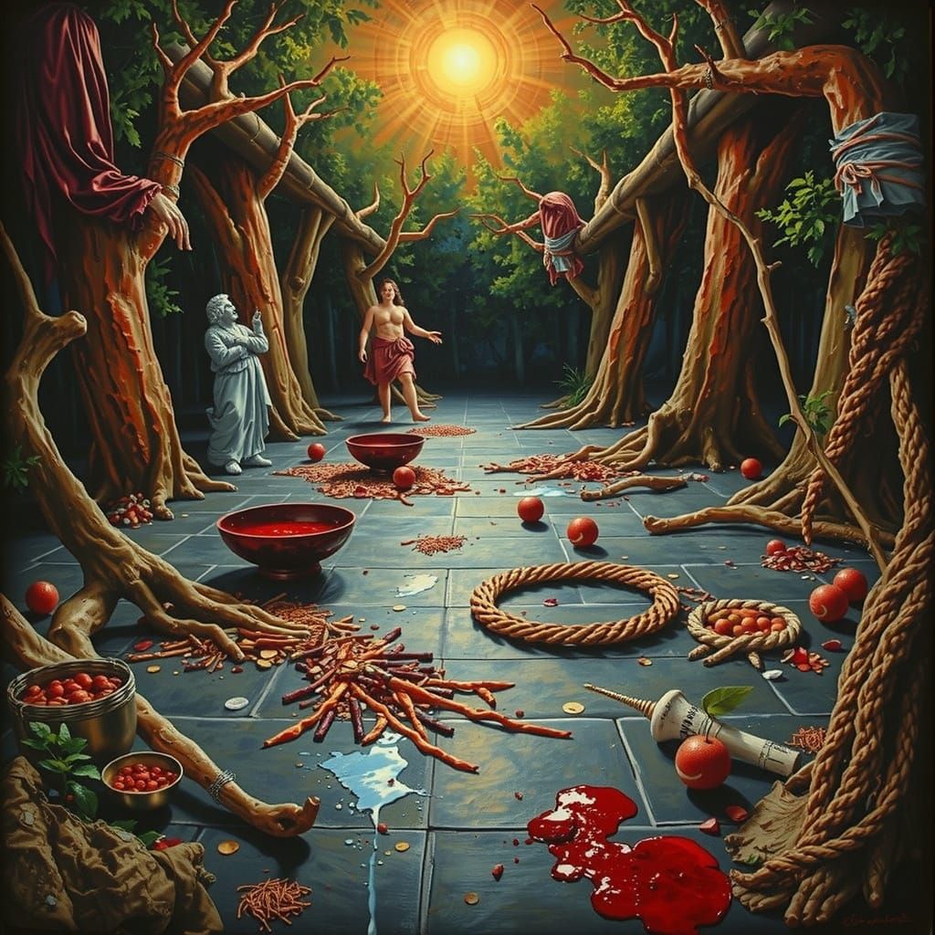 A vibrant image depicting an intensely expressive sculpture bathed in shades of red. The artwork showcases a painterly style, capturing a sense of imminent glory through rich color and texture.