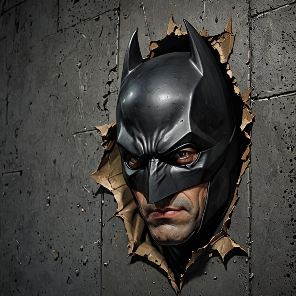 A dramatic image of Batman peering from behind his iconic mask. The dark shadows and focused composition highlight the mysterious nature of the Dark Knight.