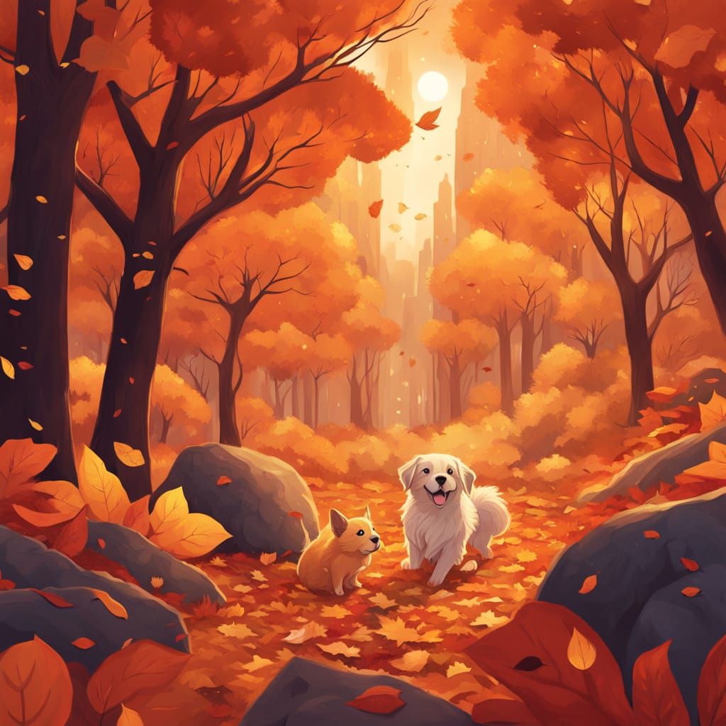 Generate your own cozy pet autumn images. It's free, easy, and fun to create magical animals playing in leaves!