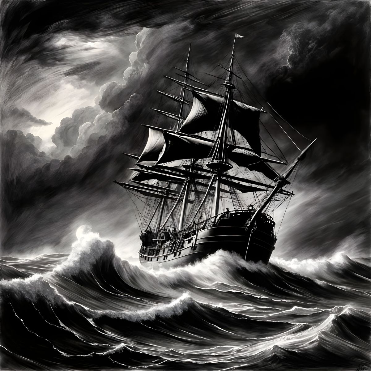 Dark Stormy Seascape in Hyperdetailed Charcoal