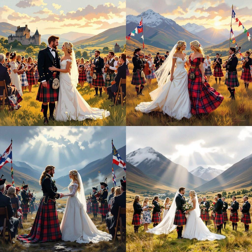 Generate your own unique images of Scottish weddings and vibrant festivals with our free AI tool. Easy and fun!